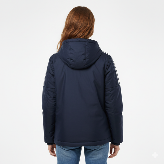 La chompa Adidas para mujer en color azul marino es una prenda elegante y funcional, ideal para el uso diario o actividades deportivas. Está confeccionada con materiales de alta calidad, como algodón, poliéster reciclado o una mezcla de ambos, brindando suavidad, confort y transpirabilidad.