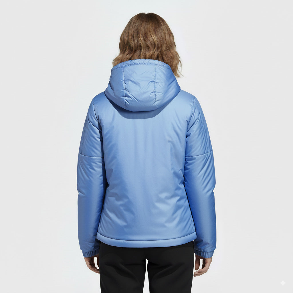 La chompa Adidas para mujer en color celeste es una prenda cómoda y moderna, perfecta para climas frescos y un estilo casual o deportivo. Está confeccionada con materiales como algodón, poliéster reciclado o una mezcla de ambos, ofreciendo suavidad, transpirabilidad y abrigo.