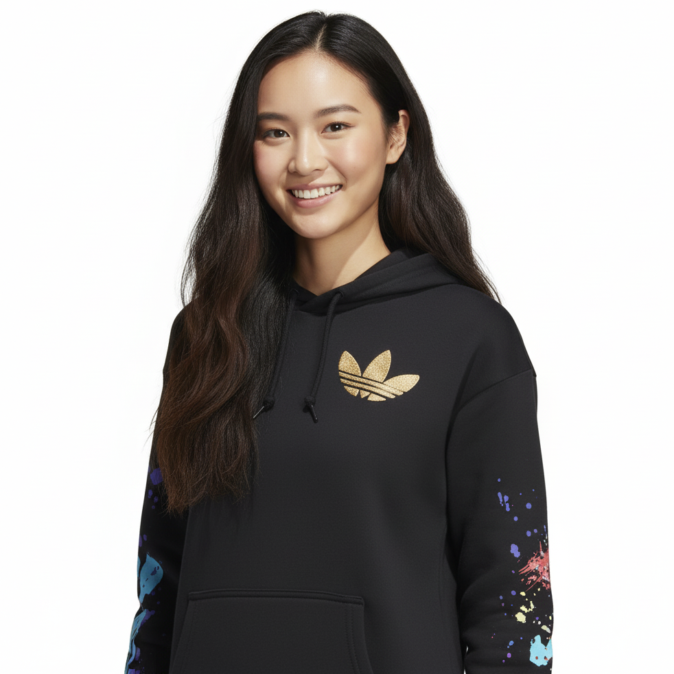 Este Adidas Suéter deportivo con Capucha para Mujer en color negro presenta el icónico logo de Adidas. Confeccionado con materiales de alta calidad, ofrece comodidad y estilo para tus entrenamientos. ¡La combinación perfecta entre funcionalidad y moda deportiva!