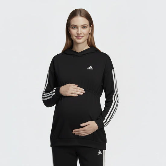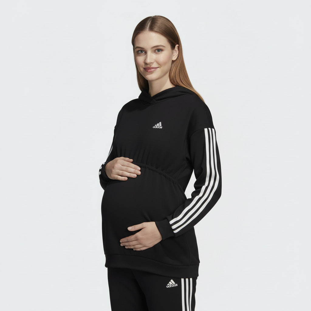 Suéter Adidas Maternity para mujer en color negro. Diseñado para brindar comodidad y ajuste durante el embarazo, con materiales suaves y elásticos. Ideal para un estilo deportivo y casual sin sacrificar confort.