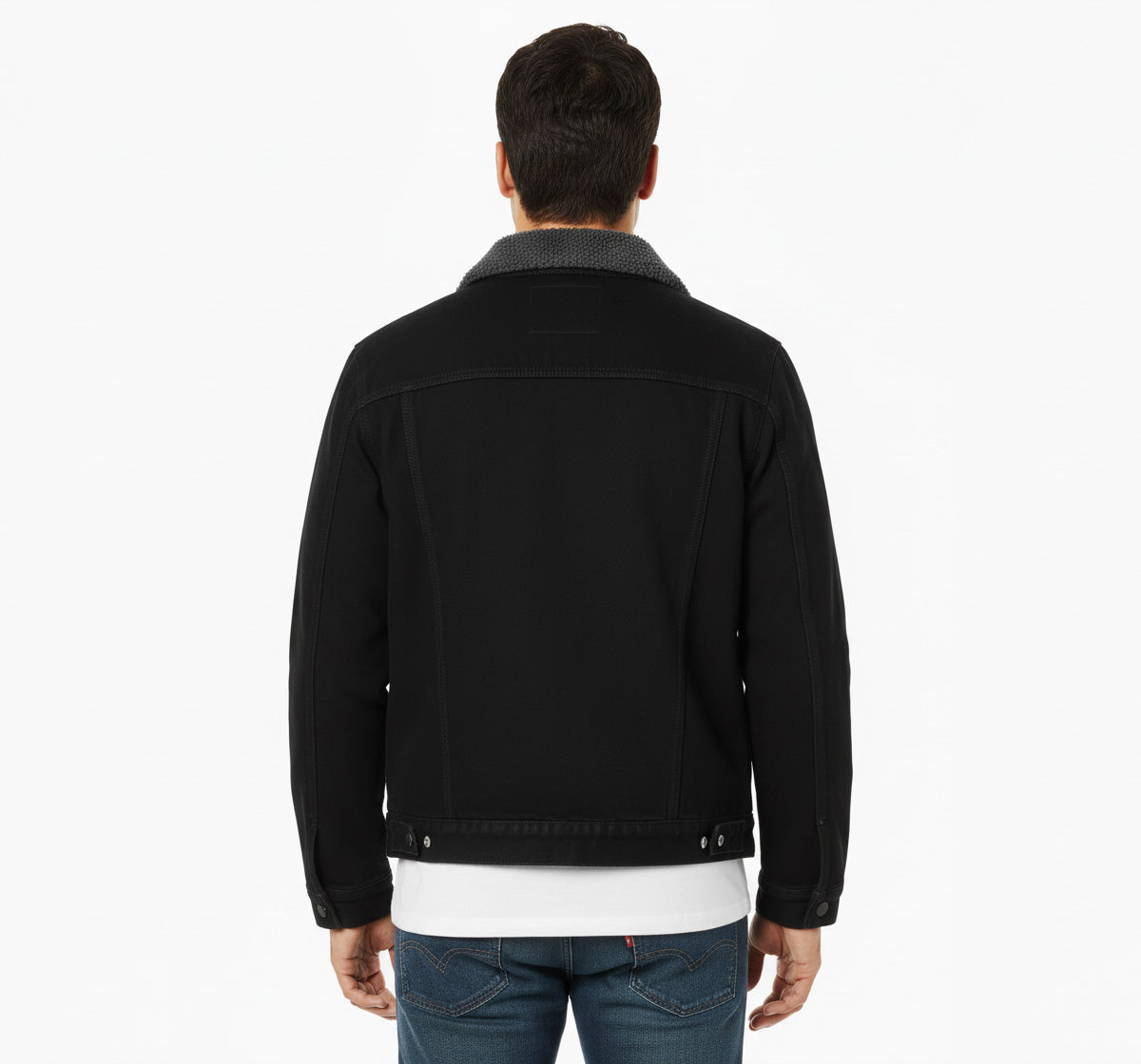 Chaqueta Levi’s ovejera de mezclilla con forro cálido de sherpa, ideal para un estilo clásico y funcional en climas fríos.