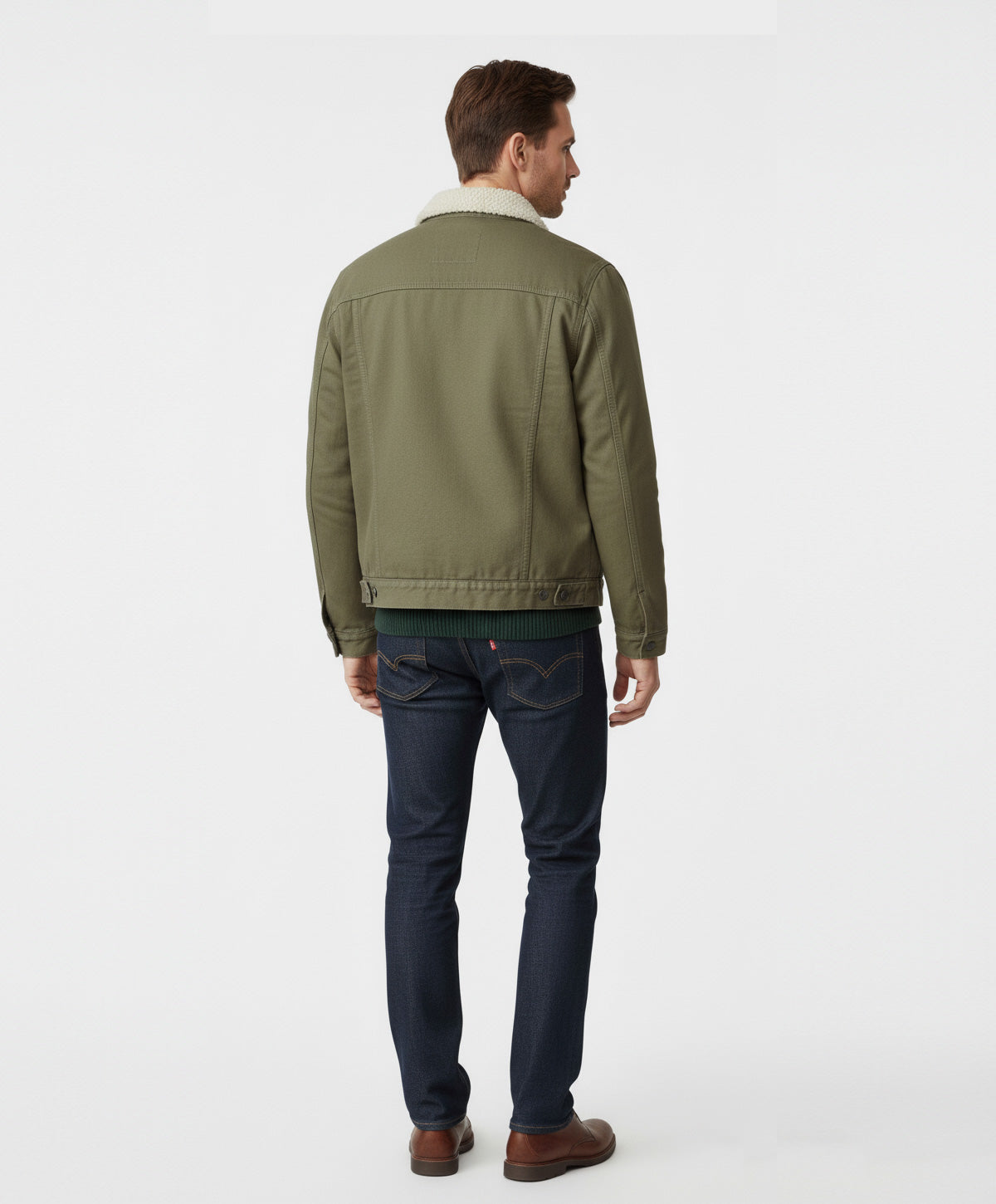 Chaqueta Levi’s ovejera de mezclilla con forro cálido de sherpa, ideal para un estilo clásico y funcional en climas fríos.