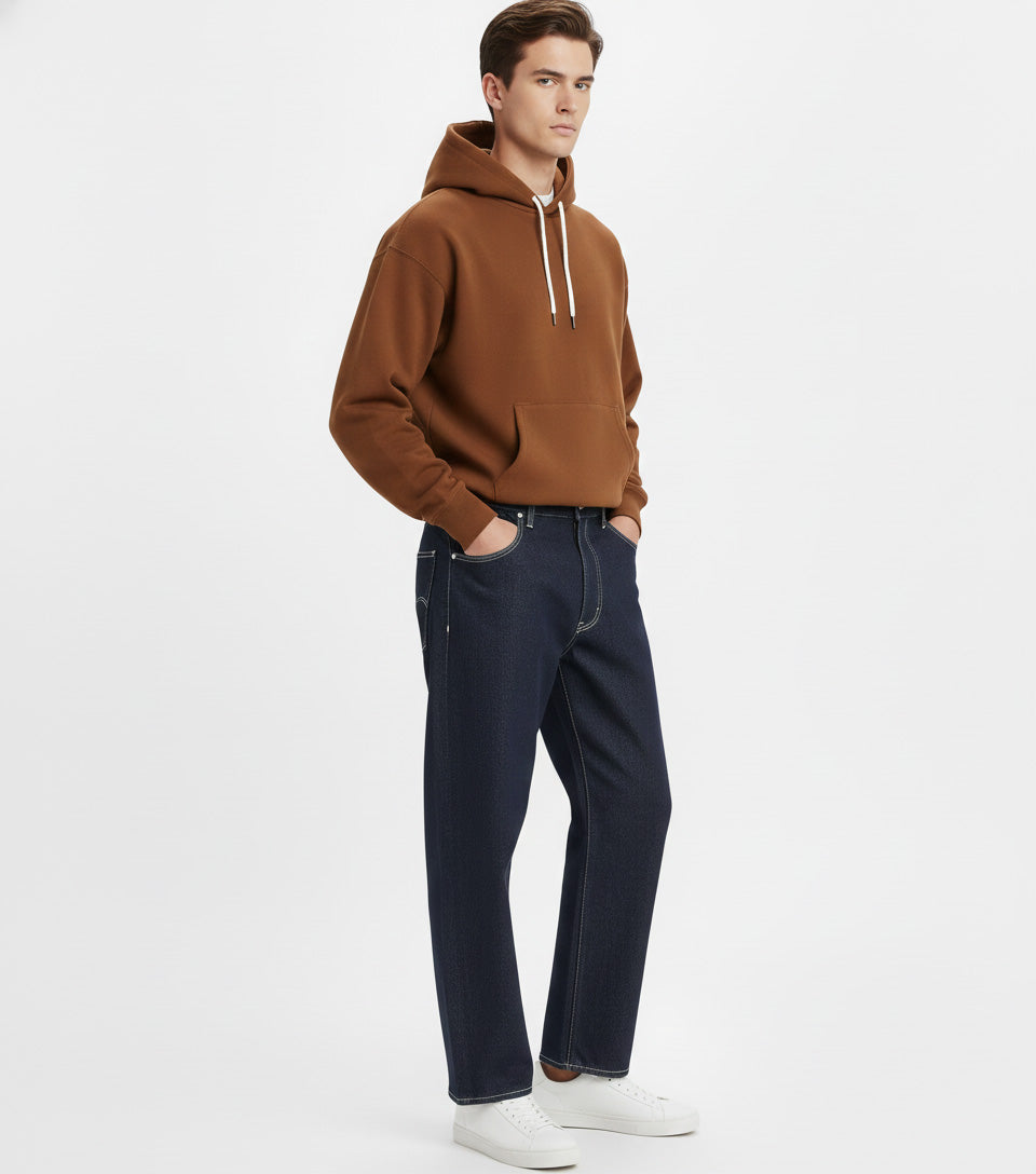 El jean Levi's Red para hombre Cropped Wide Leg en azul tiene un tiro medio o alto y un corte ancho en las piernas, que se acorta justo por encima del tobillo para un look moderno y fresco. Su estilo relajado y elegante ofrece un ajuste cómodo y favorecedor. Está confeccionado en denim de alta calidad, con un toque estructurado para resaltar el diseño de pierna ancha.