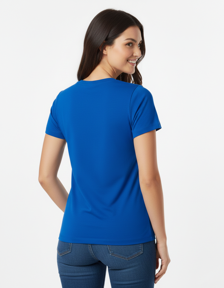 Camiseta de mujer Rachel Roy en Azul, diseñada con la elegancia característica de la marca. Esta prenda versátil combina comodidad y estilo contemporáneo, perfecta para crear looks casuales o sofisticados. Confeccionada con materiales de calidad, ofrece un ajuste favorecedor que se adapta a diferentes tipos de cuerpo. Ideal para usar sola o como base de capas, esta camiseta negra es un básico esencial que complementa cualquier guardarropa moderno.