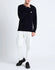 Con un diseño de tejido trenzado, este suéter de cuello redondo está elaborado en algodón orgánico, ofreciendo comodidad y estilo. El color azul marino lo hace versátil para diversas combinaciones.