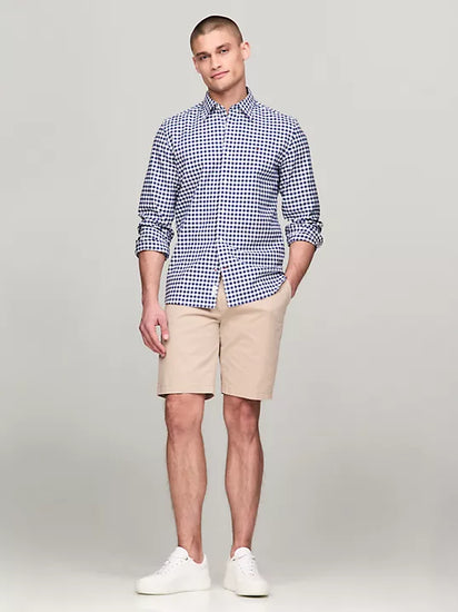 Adopte el estilo clásico e informal con esta camisa Oxford de corte regular, que se distingue por un estampado de cuadros vichy en toda su extensión con la sutil marca Tommy Hilfiger.
