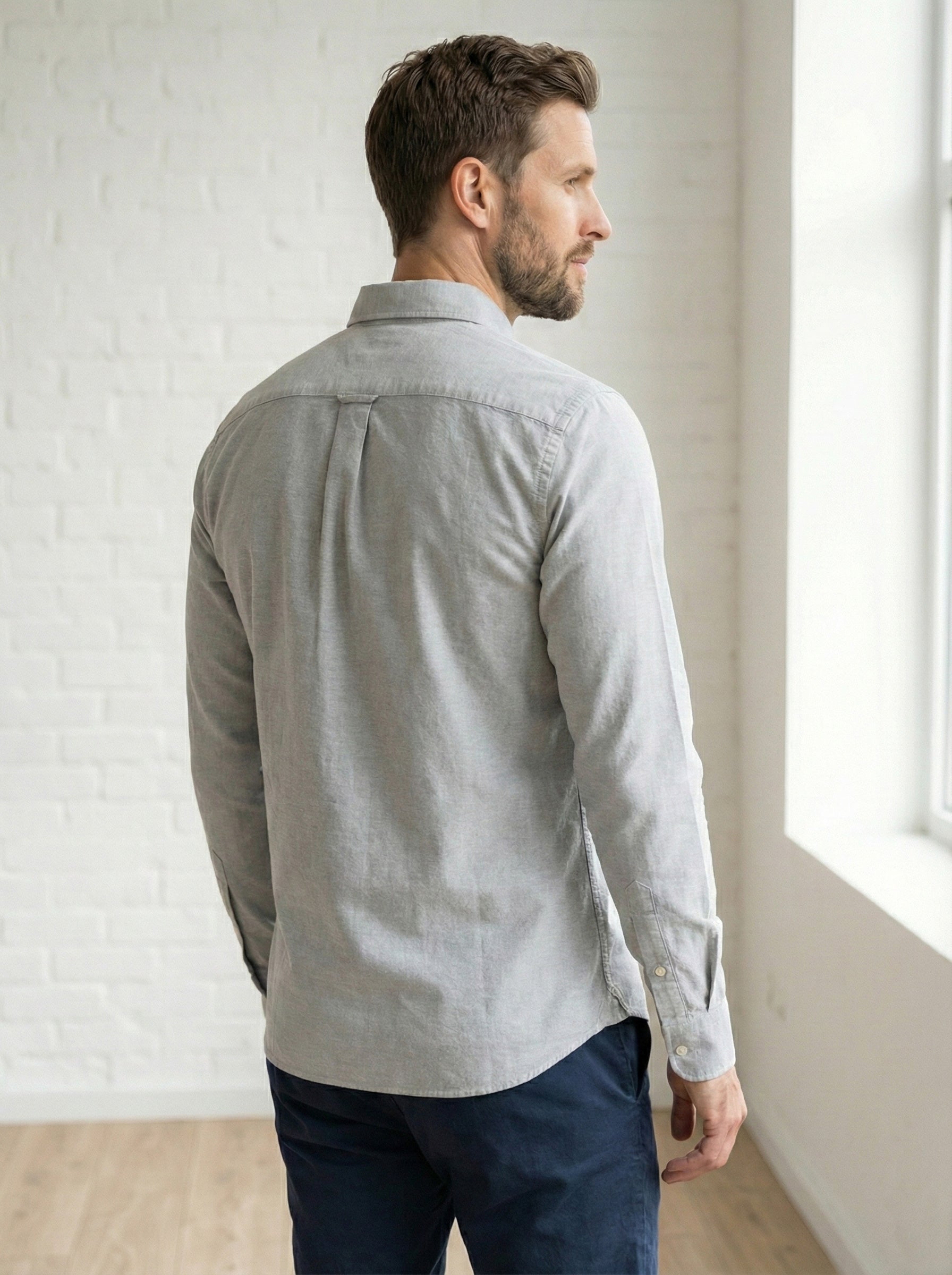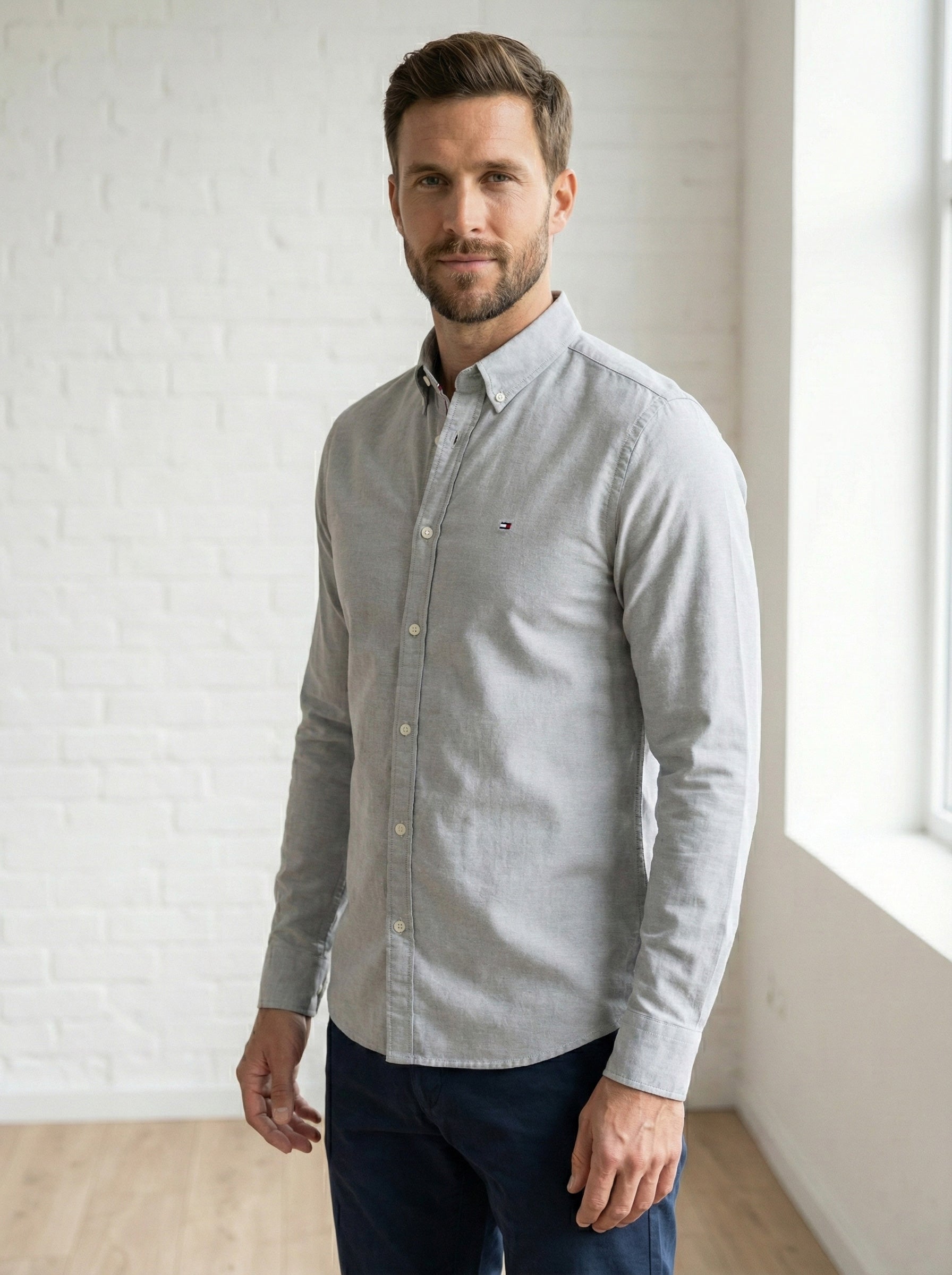 Camisa Oxford Tommy Hilfiger para hombre en color gris, de manga larga. Confeccionada en algodón de alta calidad, ofrece un ajuste cómodo y elegante. Ideal para un look formal o casual, con el estilo clásico y sofisticado de la marca.