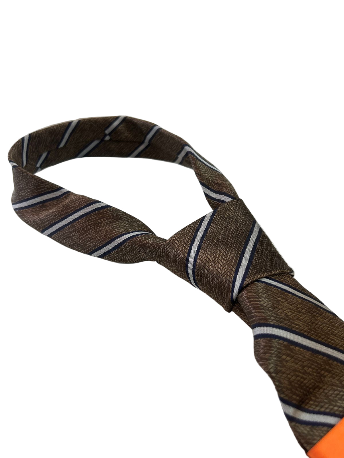 La corbata Tommy Hilfiger en tono café con rayas ofrece un diseño clásico y sofisticado, ideal para complementar un atuendo formal o de negocios. Su patrón rayado añade un detalle visual elegante que resalta sin perder discreción. Fabricada con materiales de alta calidad, garantiza durabilidad y un acabado impecable, perfecto para quienes buscan un accesorio que combine estilo y profesionalismo.