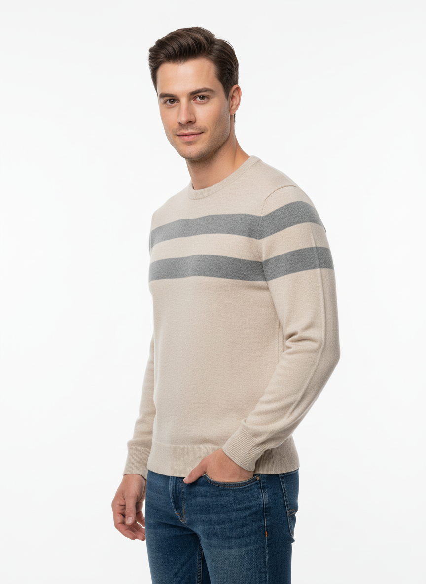Tommy Hilfiger Suéter Cuello Redondo con Rayas Dobles Hombre Beige