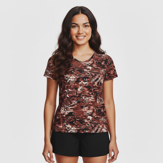 Incluye la camiseta deportiva Under Armour para mujer en color terracota. Confeccionada con materiales de alta calidad, esta camiseta ofrece comodidad y estilo para tus entrenamientos. Disfruta de un mayor rendimiento gracias a la tecnología de ventilación incorporada.